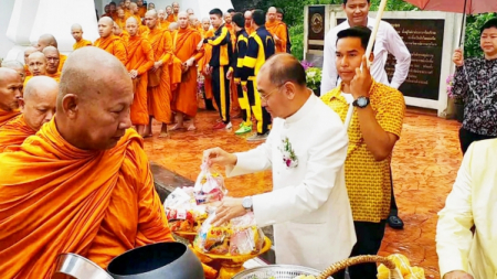 บรรยากาศงานพิธีตักบาตรเทโวโรหณะ ของชาวจังหวัดประจวบคีรีขันธ์ ณ บริเวณเขาช่องกระจก