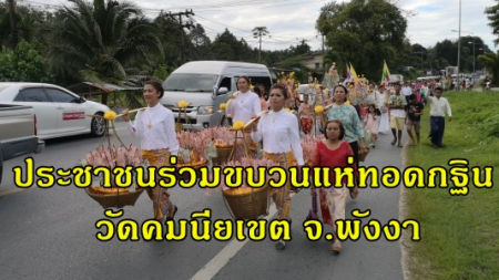 ประชาชนจำนวนมากร่วมเดินขบวนแห่หาบเงิน ในงานทอดกฐิน ที่วัดคมนียเขต จ.พังงา