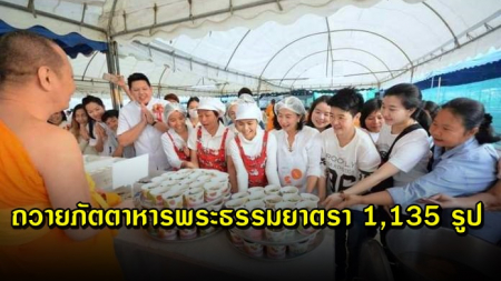 พุทธศาสนิกชนร่วมถวายภัตตาหารพระธรรมยาตรา 1,135 รูป อย่างเนืองแน่น