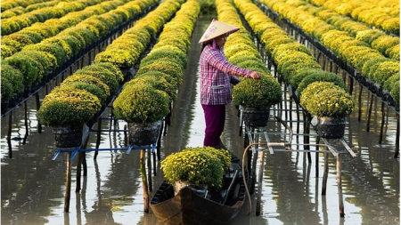 รอดทุกต้น...เกษตรกรเวียดนาม “ยกสวน” ดอกไม้หนีน้ำท่วม หลังเจอพายุฝนตกหนัก