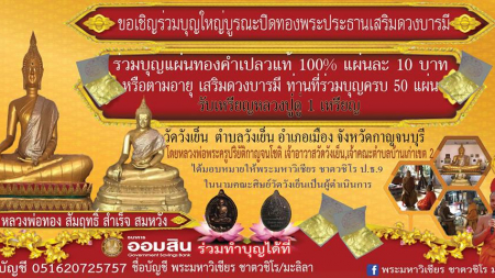 ทำบุญปิดทองบูรณะพระประธานในอุโบสถวัดวังเย็น จ.กาญจนบุรี