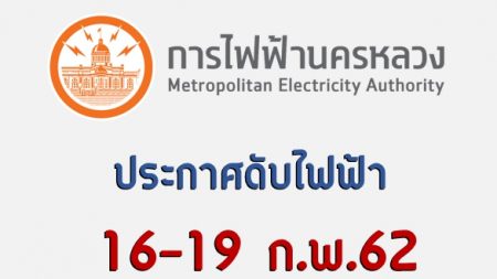 การไฟฟ้านครหลวง ประกาศดับไฟบางพื้นที่ในเขตกรุงเทพฯ และสมุทรปราการ ระหว่างวันที่ 16-19 ก.พ.62 เพื่อ...