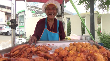 คุณยายจำลอง ชาว จ.พิษณุโลก เจ้าของร้านกล้วยทอด 99 ปี ทำบุญฉลองอายุครบ 100 ปี แจกกล้วยทอด-มันทอด-ขนมไ...