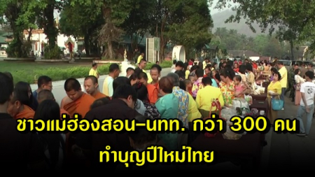 ชาวแม่ฮ่องสอน และนักท่องเที่ยวกว่า 300 คน ร่วมกันทำบุญตักบาตรเนื่องในวันสงกรานต์ หรือวันปีใหม่ไทย