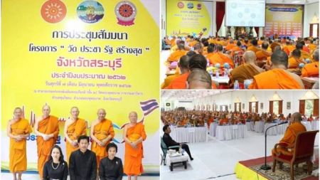 คณะสงฆ์ จ. สระบุรีจัดประชุม สัมมนา พร้อมขับเคลื่อนโครงการ " วัด ประชา รัฐ สร้างสุข"