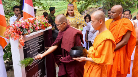 สมเด็จพระสังฆราช 4 นิกาย แห่งศรีลังกา ร่วมพิธีเปิดป้ายสถาปนาพระอุโบสถกลางน้ำและมอบตำแหน่งพุทธศาสนคลี...