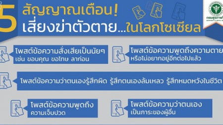 กรมสุขภาพจิต แนะคนใกล้ชิดสังเกต 5 สัญญาณเตือนเสี่ยงจบชีวิต หลังดาราหนุ่มโพสต์เป็นลางในโซเชียลก่อนตัด...