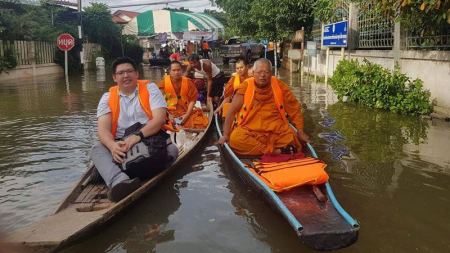 คณะสงฆ์จังหวัดปทุมธานี ชมรมรักษ์บวร รักษ์ศีล 5 ปทุมธานีฯ ลงพื้นที่เพื่อมอบถุงยังชีพช่วยเหลือผู้ประสบ...