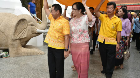 พุทธศาสนิกชนชาวสุพรรณบุรี ร่วมพิธีห่มผ้าหลวงพ่อโต งานเทศกาลนมัสการหลวงพ่อโต ครั้งที่ 2 เป็นจำนวนมาก