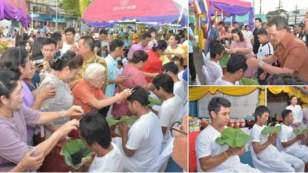 ภายหลังจากการบวชนาคในวันนี้แล้ว นาคทั้ง 6 จะได้เข้าพิธีอุปสมบท ณ วัดเหมืองประชาราม อำเภอท้ายเหมือง แ...