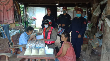 กองร้อยน้ำหวาน สภ.เมืองสกลนคร นำเครื่องอุปโภคบริโภค เงินเยียวยาเบื้องต้นในการดำรงชีพ เพื่อเป็นการบรร...