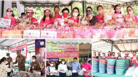 สำหรับการแจกสิ่งของให้ทุกคนที่ได้รับคูปองเข้าแถวรับแจกเป็นระเบียบ อยู่ตามระยะห่าง social distancing...