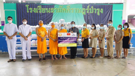 คณะสงฆ์ อ.คลองหลวง ร่วม อบต.คลองสาม และวัดพระธรรมกาย มอบทาน มอบธรรม ณ โรงเรียนสามัคคีราษฎร์บำรุง