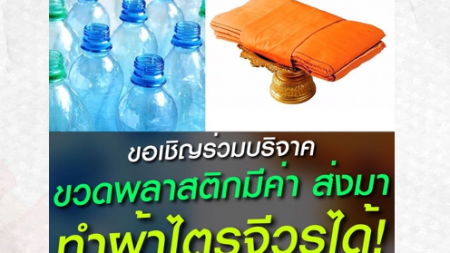 ขวดพลาสติกมีค่าอย่าทิ้ง! นำมาทำผ้าไตรจีวรได้! ขวดพลาสติกใส PET 15 ขวด = จีวร 1 ผืน!