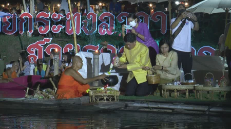 ผู้ว่าฯ พิจิตร นำประชาชนตักบาตรทางน้ำและชมการแสดงย้อนอดีตชุมชนบางข้าวตอก พร้อมนำประชาชนลอยกระทงและรั...