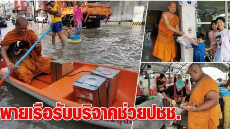 WinNews : “พระมหาบวร ปวรธมฺโม” เจ้าอาวาสวัดบุญนารอบ พายเรือรับสิ่งของบริจาค ช่วยเหลือประชาชน