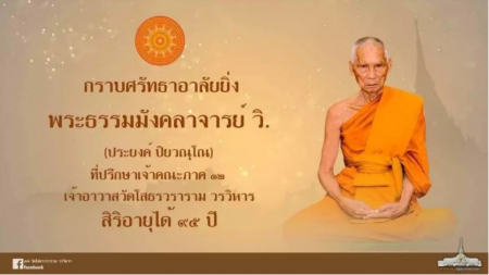 พระธรรมมังคลาจารย์ วิ. (ประยงค์ ปิยวณฺโณ) ที่ปรึกษาเจ้าคณะภาค 12 เจ้าอาวาสวัดโสธรวราราม วรวิหาร สิริ...