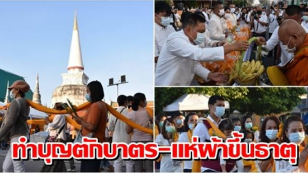 WinNews : พุทธศาสนิกชนเนื่องแน่นวัดพระมหาธาตุ ร่วมทำบุญตักบาตร-แห่ผ้าขึ้นธาตุ วันมาฆบูชา
