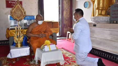 กระทรวงมหาดไทย เชิญเครื่องราชสักการะที่ทรงพระราชอุทิศในการพระราชพิธีสงกรานต์ถวายเป็นพุทธบูชา ณ วิหาร...