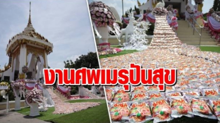 โคราชจัดงานศพเก๋ไก๋..งานศพเมรุปันสุข ตกแต่งด้วยบะหมี่กึ่งสำเร็จรูป และข้าวสาร หลังเสร็จงานนำไปแจกจ่า...
