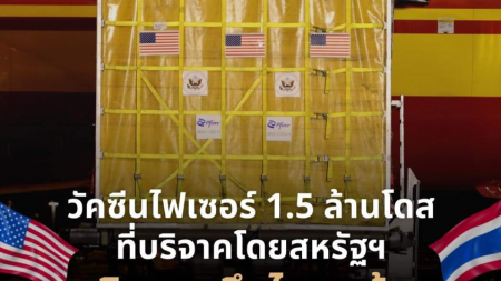 สถานเอกอัคราชทูตสหรัฐอเมริกาประจำประเทศไทย ระบุ วัคซีนไฟเซอร์ จำนวน 1.5 ล้านโดส ที่บริจาคโดยสห...