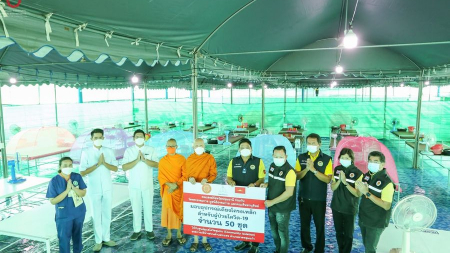 คณะสงฆ์จังหวัดปทุมธานี ร่วมกับ วัดพระธรรมกาย มอบชุดอุปกรณ์ทำเตียงสำหรับดูแลผู้ป่วยโควิด-19 จำนวน 50...