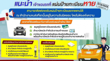เจ้าของรถที่แผ่นป้ายทะเบียนหลุดหาย สามารถขอรับแผ่นป้ายทะเบียนใหม่ได้ทันทีโดยไม่ต้องเดินทางไปแจ้งความ...