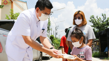 คุณองอาจ ธรรมนิทา เป็นผู้แทนลงพื้นที่ช่วยเหลือผู้ประสบภัยโควิด-19 ในจังหวัดปทุมธานี