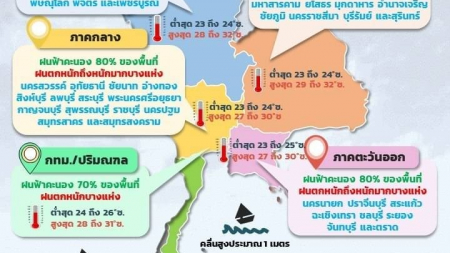 ภาคกลางและตะวันออก มีฝนตกหนักถึงหนักมากในบางพื้นที่ ขอให้ประชาชนในบริเวณพื้นที่เสี่ยงภัยระวังอันตราย...