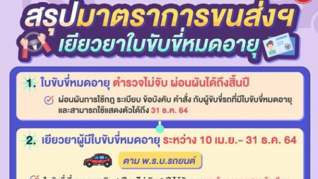 ทางขนส่งเลยมีมาตราการเยียวยา ให้ผู้ที่ใบขับขี่หมดอายุยังไม่ต้องไปต่อก็ได้ ผ่อนผันได้ถึงสิ้นปี และหรื...