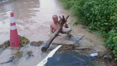 ชาวบ้านชื่นชม นายดาบตำรวจถอดเครื่องแบบ ลุยลอกเศษขยะ อุดตันท่อ ทำน้ำท่วมถนน หลังเกิดฝนตกหนักในพื้นที่...