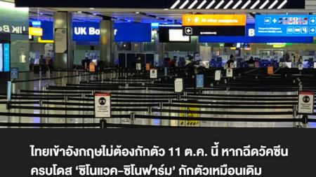 อังกฤษถอดไทยจากบัญชีสีแดง 11 ต.ค. นี้ เข้าอังกฤษไม่ต้องกักตัวหากฉีดวัคซีนครบโดสแล้ว แต่ฉีด ‘ซิโนแวค-...