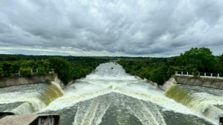 เกินความจุ! เขื่อนทับเสลา จ.อุทัยธานี น้ำล้นสปิลเวย์ ทำให้ต้องเปิดประตูระบายน้ำทั้ง 3 บาน เตือน 2 อำ...
