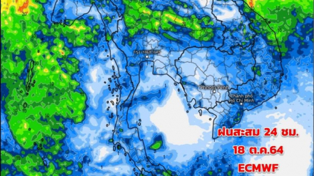 ภาพกราฟฟิก แสดงการพยากรณ์ฝนรวมทุกๆ 24 ชม. 10 วันล่วงหน้า (18 - 27 ต.ค.64) (ระหว่างเวลา 07.00น. - 07....