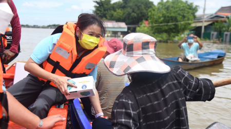 อบจ.ปทุมธานีแจกถุงยังชีพเครื่องบริโภคจำเป็นต่างๆให้กับประชาชนที่ได้รับความเดือดร้อนในเบื้องต้น ณ บริ...