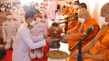 พระบาทสมเด็จพระเจ้าอยู่หัว ทรงพระกรุณาโปรดเกล้าฯ พระราชทานผ้าพระกฐิน ให้มหาวิทยาลัยกรุงเทพ นำไปถวายแ...