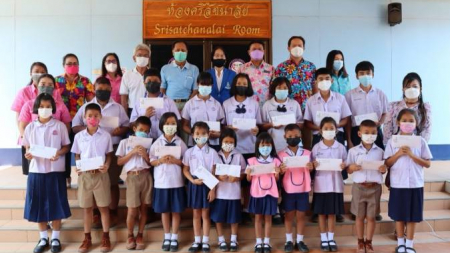 กรรมการบริหารมูลนิธิช่วยนักเรียนที่ขาดแคลนในพระบรมราชินูปถัมภ์(ม.น.ข.)มอบทุนการศึกษาของมูลนิธิฯ