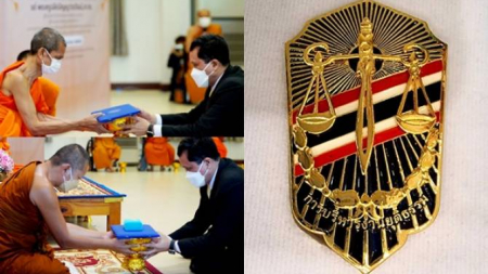 ผอ.สำนักงานกิจการยุติธรรม และคณะ เข้าถวายประกาศนียบัตรกิตติมศักดิ์ พร้อมเข็มวิทยฐานะ แด่พระธรรมวัชร...