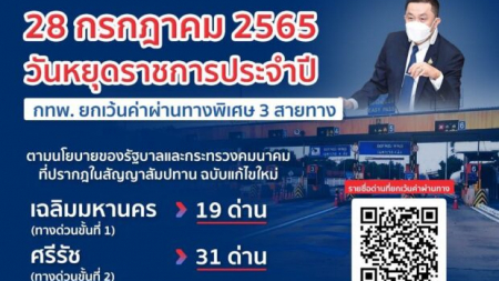 การทางพิเศษแห่งประเทศไทย อำนวยความสะดวกในการเดินทางให้ประชาชน เปิดให้ขึ้นทางด่วน 3 สาย 60 ด่านฟรี 28...