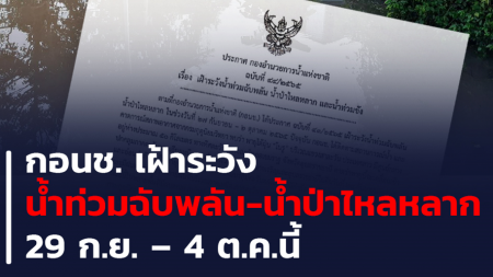 กอนช. เฝ้าระวังน้ำท่วมฉับพลัน น้ำป่าไหลหลาก และน้ำท่วมขังในหลายพื้นที่ทั่วประเทศ ช่วงวันที่ 29 ก.ย....