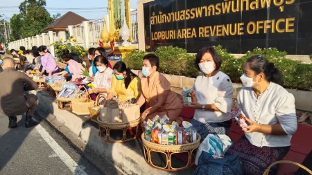 สำนักงานวัฒนธรรมจังหวัดลพบุรี จัดกิจกรรมตักบาตรข้าวสาร อาหารแห้ง โครงการถนนสายบุญนำสู่การสร้างสุข จั...